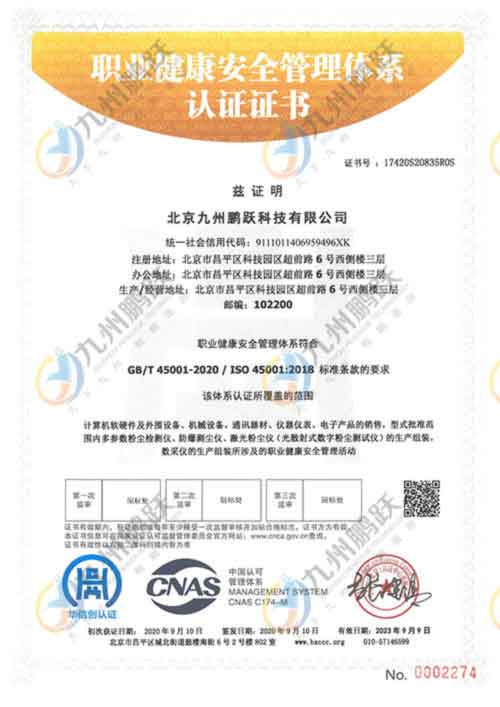 ISO45001職業健康體系證書